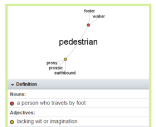 VocaGrabber provided three types of word knowledge including word parts, form and meaning; see the association of the word “pedestrian”, as in Figure 3, completed by Claire for her project. Claire wrote, “I like VocaGrabber because vocabulary words are organized in different categories with word parts, such as nouns, verbs, etc.” Learners can acquire vocabulary by making words from different components (Harmer, 2012). Learners can learn a word consisting of different elements: the root word, suffix and prefix. Moreover, learning word parts can also facilitate learners to acquire the word family of a single word, e.g., able: adjectives (i.e., able, unable), adverb (i.e., ably), noun (i.e., ability, inability, disability), and verbs (i.e., enable, disable).
