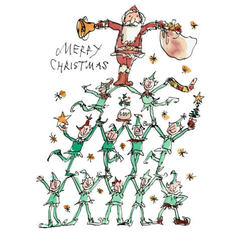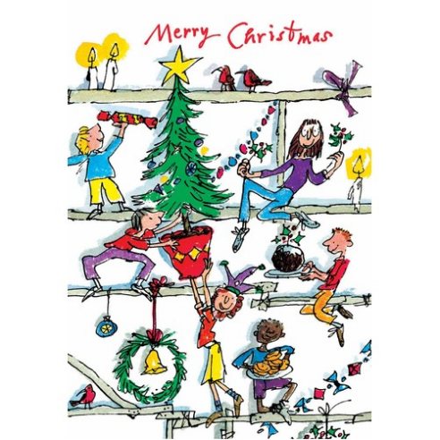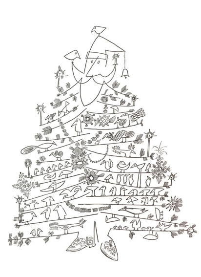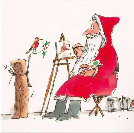 I quite like modern Christmas cards designed by artists. But I would like to focus on silly Christmas cards by Saul Steinberg and Quentin Blake. A perfect activity that works with each of these cards is as follows: