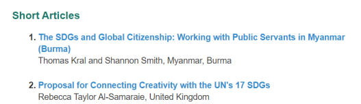The publication appeared early 2017, so very soon after the UN historic summits. There was great interest in the publication and many well known TEFLers contributed to the collection. The interest was so great that not all of them could be included. But soon the editors found a solution and offered Humanising Language Teaching (HLTmag) ( www.hltmag.co.uk ) to publish the overspill. You can find these 6 articles in http://old.hltmag.co.uk/jun17/index.htm - (last accessed 20.04.2025).
