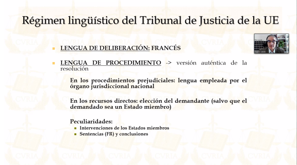 As the result of a long-term cooperation with the Czech legal translation unit at the Court of Justice of the European Union, we decided to incorporate a workshop on legal translation for the EU into the third semester of the legal Spanish course. We originally intended to organize the seminar face-to-face, as part of the ERASMUS + programme supporting inclusion of experts in teaching. However, the Covid-19 pandemic made this impossible, and therefore online cooperation was agreed upon. Through a Czech lawyer translator, a former graduate of the Spanish and French courses at the MU Law Faculty, a Spanish lawyer–translator was approached, who was willing to share with the students his experience as a translator at the Court of Justice. The seminar was scheduled for when the topic of international law and EU institutions was to be discussed. The language level of this group of students was B2/C1.