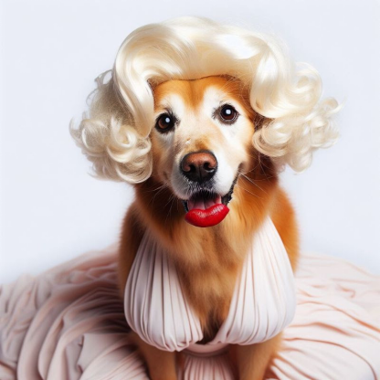 I am happy to say that no dogs were forced to wear lipstick or dress up as Marilyn Monroe. It's not even a real photograph – it's an image that was created by DALL-E3, an artificial intelligence image generator.
